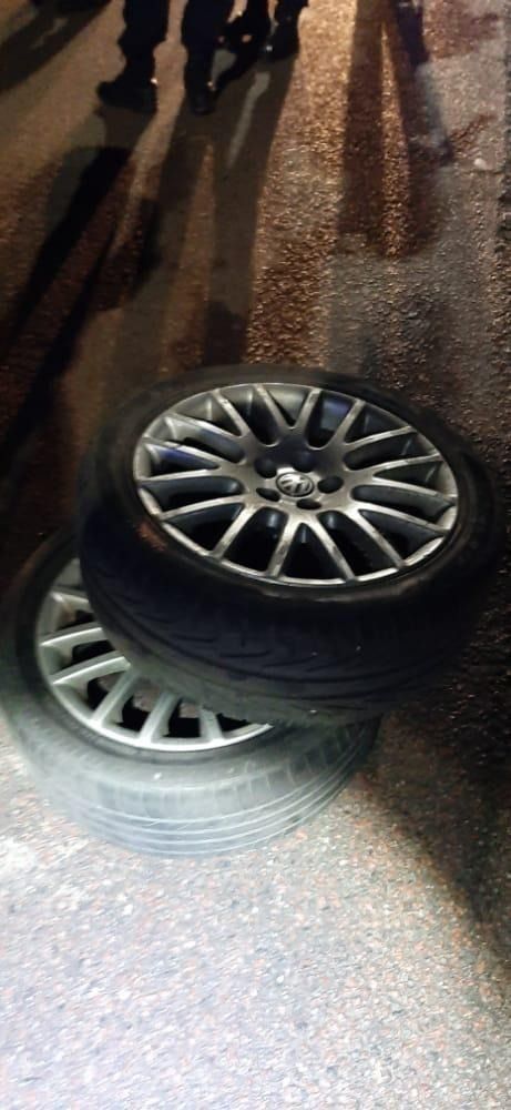 Al momento de ser aprehendidos, los acusados estuvieron lejos de cambiar su actitud y bajaron a pelearse a los golpes con los uniformados, quienes lograron reducirlos. Con algunos testigos presenciales, se revisó el auto y encontraron 24 tornillos de ruedas de autos, dos llantas y neumáticos rodado 17.