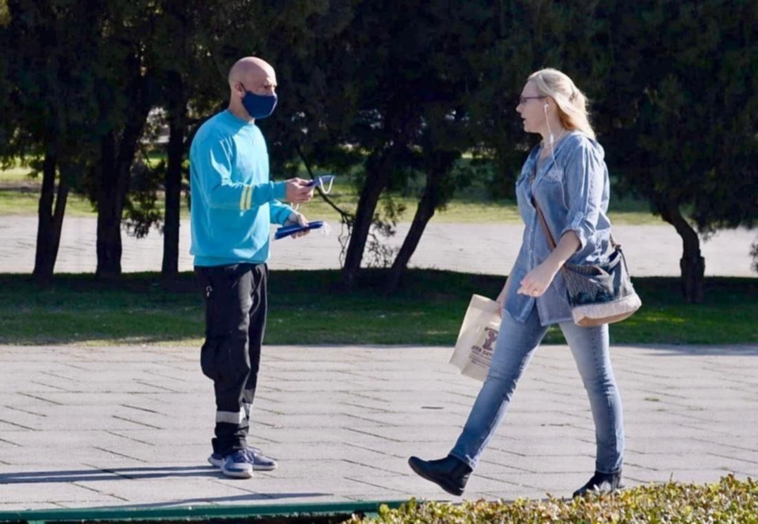 En ese marco, las autoridades realizaron este sábado tareas de prevención y concientización en todos los espacios verdes de la ciudad, que subrayaron un importante cumplimiento del distanciamiento social y el uso de barbijo.