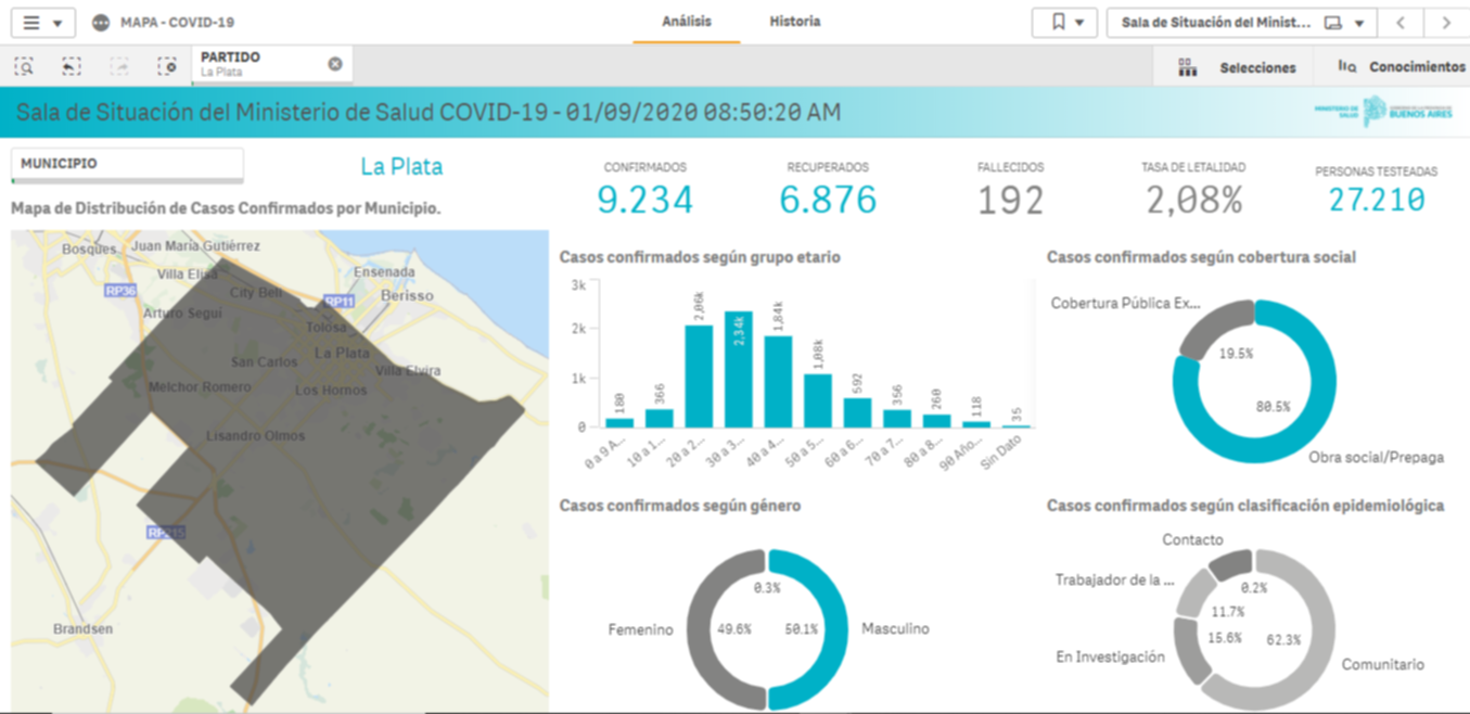 Así, la curva de la pandemia continúa en pleno ascenso en la ciudad. La última actualización de la sala de situación epidemiológica de la provincia de Buenos Aires, refleja a su vez que 6.876 personas se recuperaron de la enfermedad en La Plata y ya se realizaron 27.210 testeos. De esta manera, el número de casos activos es de 2.166 y la tasa de letalidad del virus es del 2,08%.