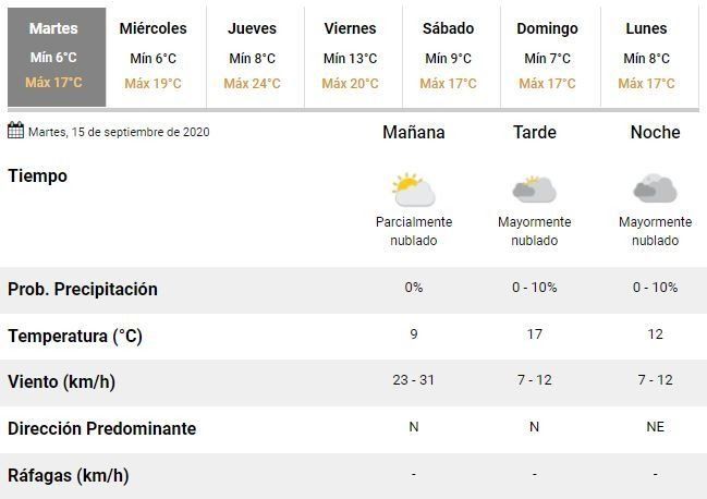 De acuerdo con los expertos municipales, el martes transcurrirá con buen tiempo, "algo nublado", de "frío a fresco" y "con vientos leves a moderados del sector norte".