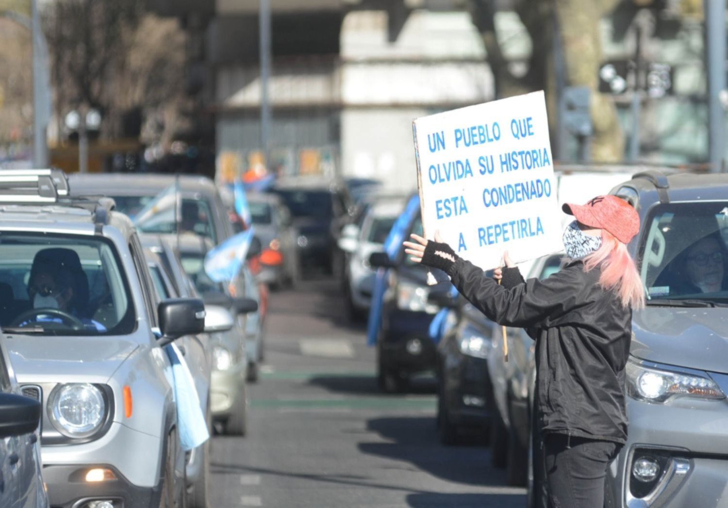 “Queremos recuperar nuestra democracia y la libertad”, eran los reclamos de algunos vecinos que se encontraban en Plaza Moreno. En los carteles, se reiteraban los pedidos de “libertad”, “Justicia” y preservación de “los derechos constitucionales”.