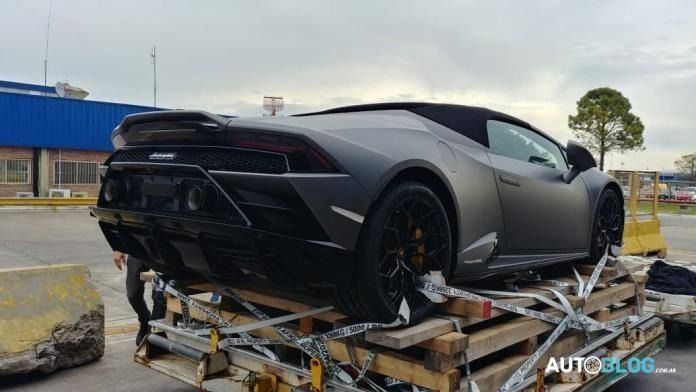 El vehículo fue primero de Italia a EEUU, según informó a Autoblog la empresa XM Logística y fue cargado en avión hacia Buenos Aires. En CarBuzz, el experto Karl Furlong define al Lamborghini Huracan Evo Spyder como un vehículo que, con sus 631 caballos de fuerza, “simplemente te hace explotar la cabeza”.