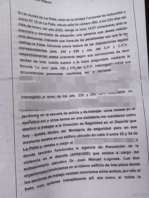 El funcionario negó ante la justicia haber abusado sexual y laboralmente de una mujer policía que cumplía funciones en la sede del organismo de seguridad deportiva de la capital bonaerense, y a fines de febrero de este año quedó formalmente procesado en la causa que instruye la fiscal Cecilia Corfield en La Plata.