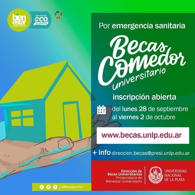 La UNLP comenzó las inscripciones para la "Beca Comedor por emergencia sanitaria", un beneficio destinado a los estudiantes de la casa de altos estudios que se encuentren en situación de vulnerabilidad, que habitualmente utilizan el Comedor Universitario y no pueden hacerlo por la pandemia. La inscripción se realiza desde este lunes y hasta el viernes 2 de octubre inclusive, a través del sitio de la Universidad.