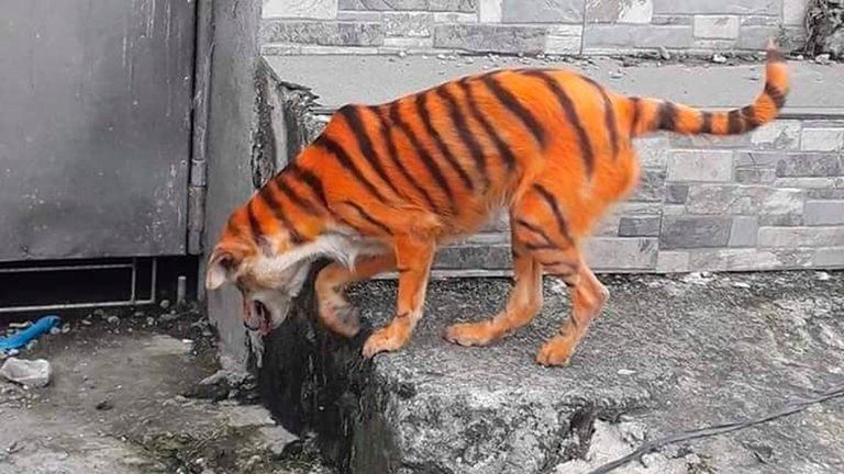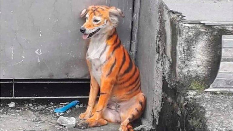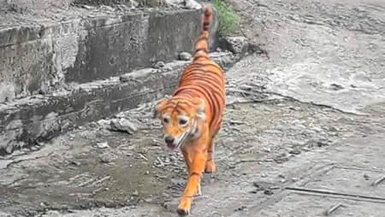 En los últimos días la imagen de un perro callejero pintado como si fuera un tigre de Bengala provocó una fuerte conmoción entre los activistas protectores de animales y desató una firme búsqueda para castigar a los responsables.