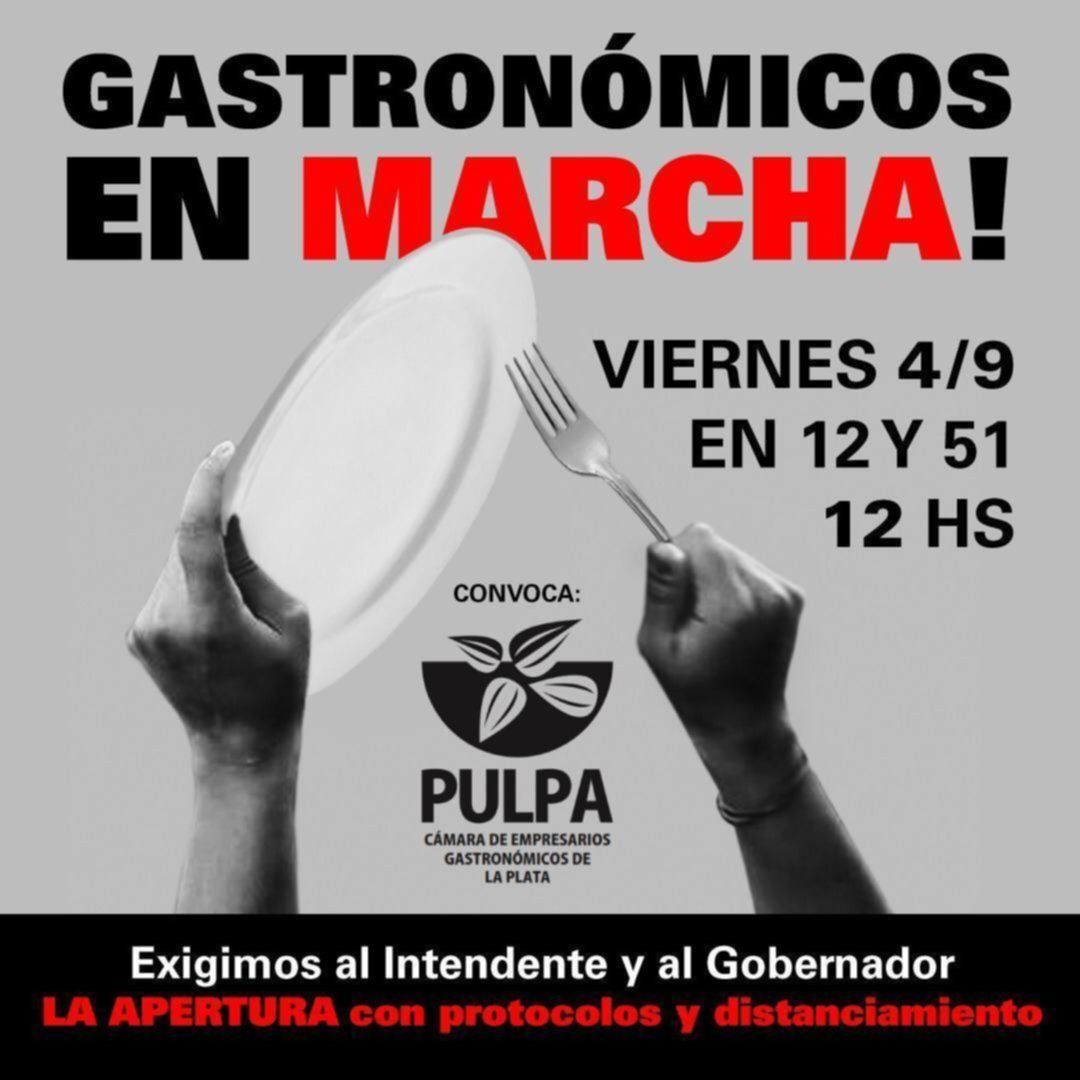 Ante el anuncio de Axel Kicillof que obliga a los locales de nuestra ciudad a seguir trabajando de una manera muy reducida en plena crisis por la pandemia, la Cámara de Empresarios Gastronómicos de La Plata (PULPA) organizó una marcha para este viernes al mediodía, en 12 y 51.