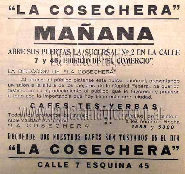 La historia explicitada en la presentación recuerda que para esos tiempos, “el café por antonomasia al que asistían desde legisladores a caracterizados dirigentes y vecinos de la ciudad era “El Paulista” situado en la esquina de 7 y 51 frente a la Legislatura”. Y remarca que “ante la inauguración de La Cosechera sufrió un éxodo de sus habitúes que acudían al nuevo lugar en búsqueda de modernidad y status”.