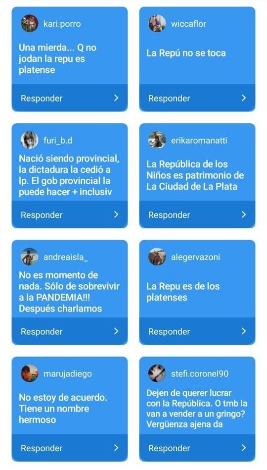 "La repu no se toca", "No es momento de nada, solo de sobrevivir a la pandemia", "La Repu es patrimonio de la ciudad de La Plata", "Hay cosas más importantes" y "Una vergüenza" fueron solo algunas de las opiniones en contra de la provincialización y el cambio de nombre del predio ubicado en Gonnet.