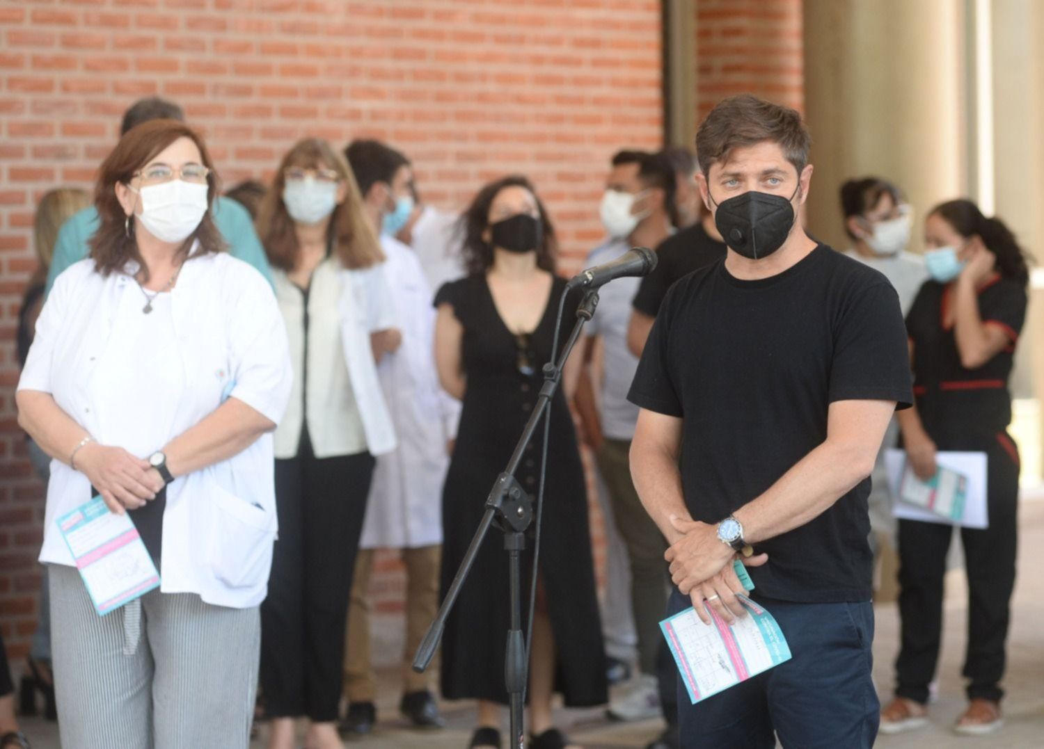 "Dentro de 15 días comenzaremos a aplicar la vacuna en escuelas, no solamente a los docentes sino que también la idea es vacunar a personal auxiliar y de toda la comunidad educativa", explicó Kicillof.