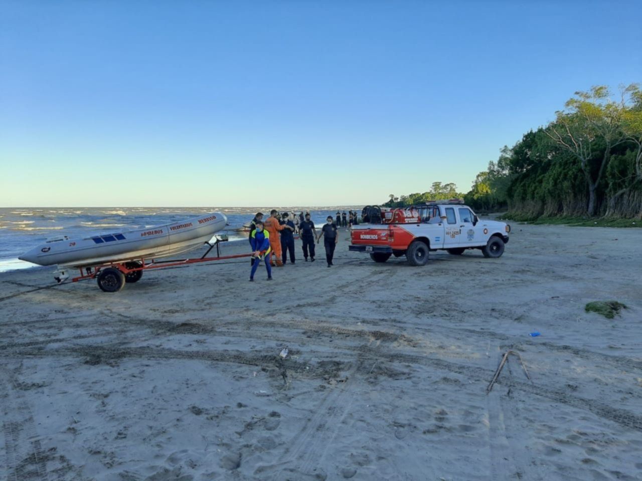 Al lugar llegaron dos embarcaciones de Bomberos y una de Defensa Civil. Tras una hora de rastrillaje, hallaron el cuerpo sin vida de la víctima en un sector lindante a la desembocadura del caño.