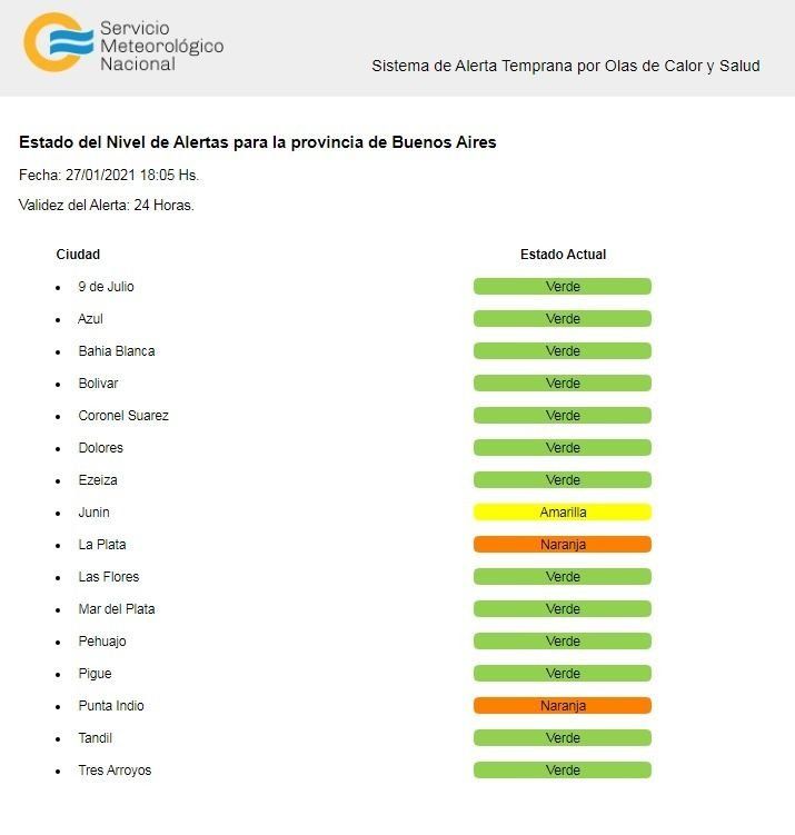 De acuerdo con los especialistas argentinos, la máxima a lo largo de la jornada podría alcanzar unos 32°C y en ese marco es que indicaron que el nivel de alerta para la ciudad es "naranja".