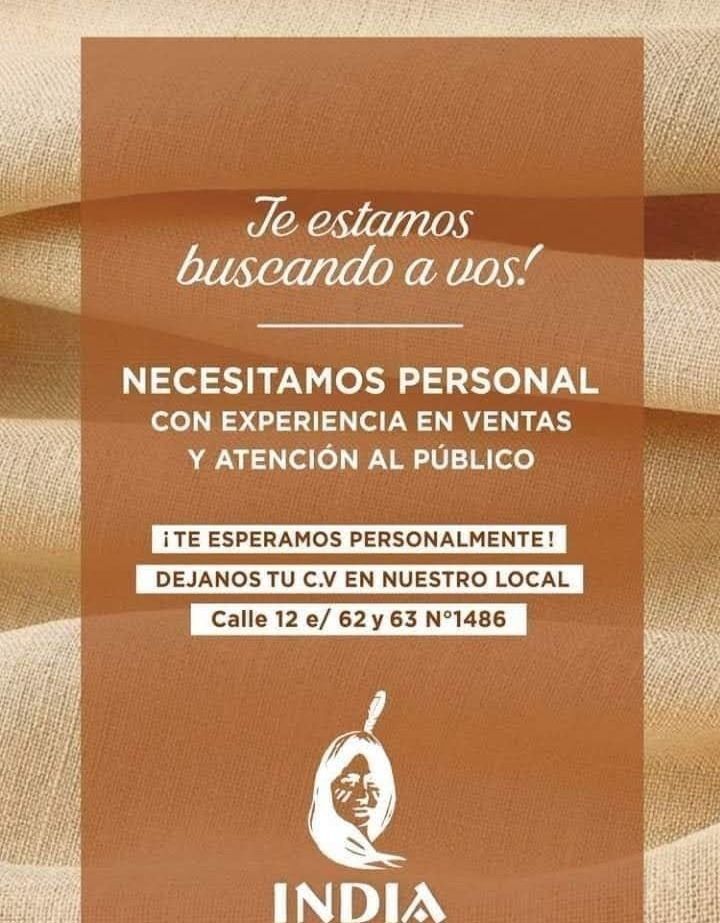 Los encargados de India Vestimenta publicaron una oferta laboral a través de sus redes sociales: buscan personal para atender sus locales. “Te estamos buscando a vos”, indicaron en la imagen.