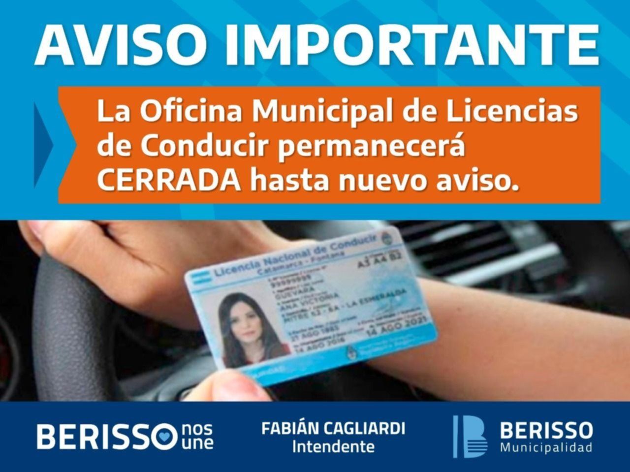 La Municipalidad de Berisso informaron en las últimas horas que desde este miércoles y "hasta nuevo aviso", se cerrará la Oficina Municipal de Licencias de Conducir. De acuerdo con las autoridades de la vecina ciudad, el área "no brindará atención al público debido al registro de casos sospechosos de coronavirus en el personal".