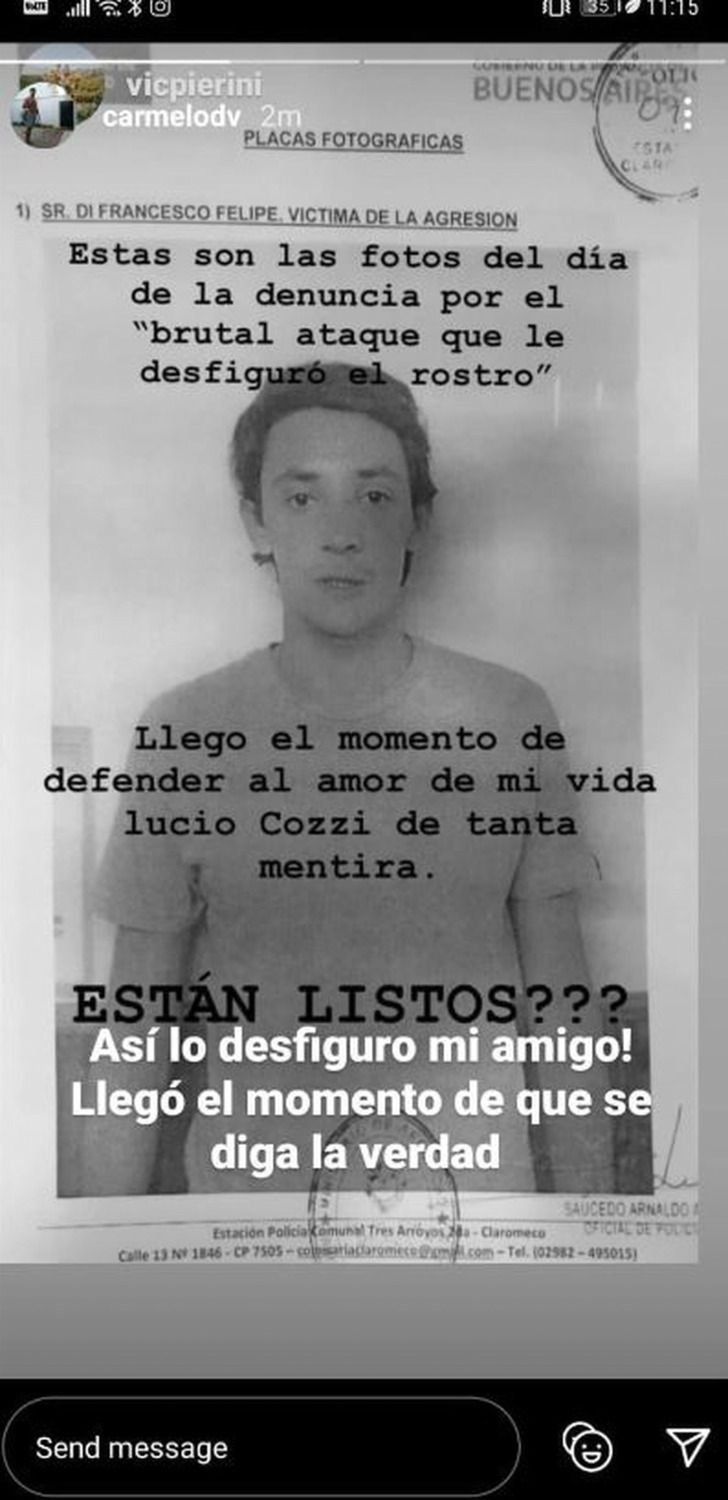 Los abogados de Felipe Di Francesco difundieron los informes y las imágenes del rostro médicos del joven de 21 años tras la golpiza que sufrió tras una fiesta clandestina que se realizó el pasado 27 de diciembre en Claromecó. La publicación de este material ocurrió unas horas más tarde de que los amigos y familiares de los mellizo Lucio e Ignacio Cozzi, los rugbiers acusados del ataque, iniciarán una campaña para poner en duda la brutalidad del ataque y, por este motivo, reclamar su absolución.