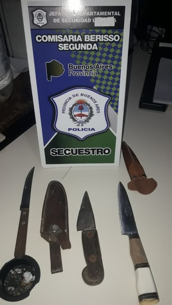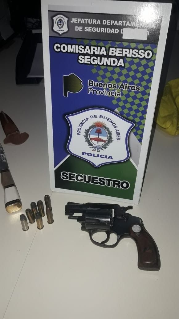 La situación motivó la intervención del personal del Comando de Patrullas de la vecina localidad, quien procedió a identificar al hombre y requisar su vehículo. En su interior, las autoridades encontraron un cuchillo tipo Tramontina y otros dos con hoja de acero y mango de madera y hueso. Además, se incautó el revólver calibre 38, con siete balas, que el implicado tenía en su poder.
