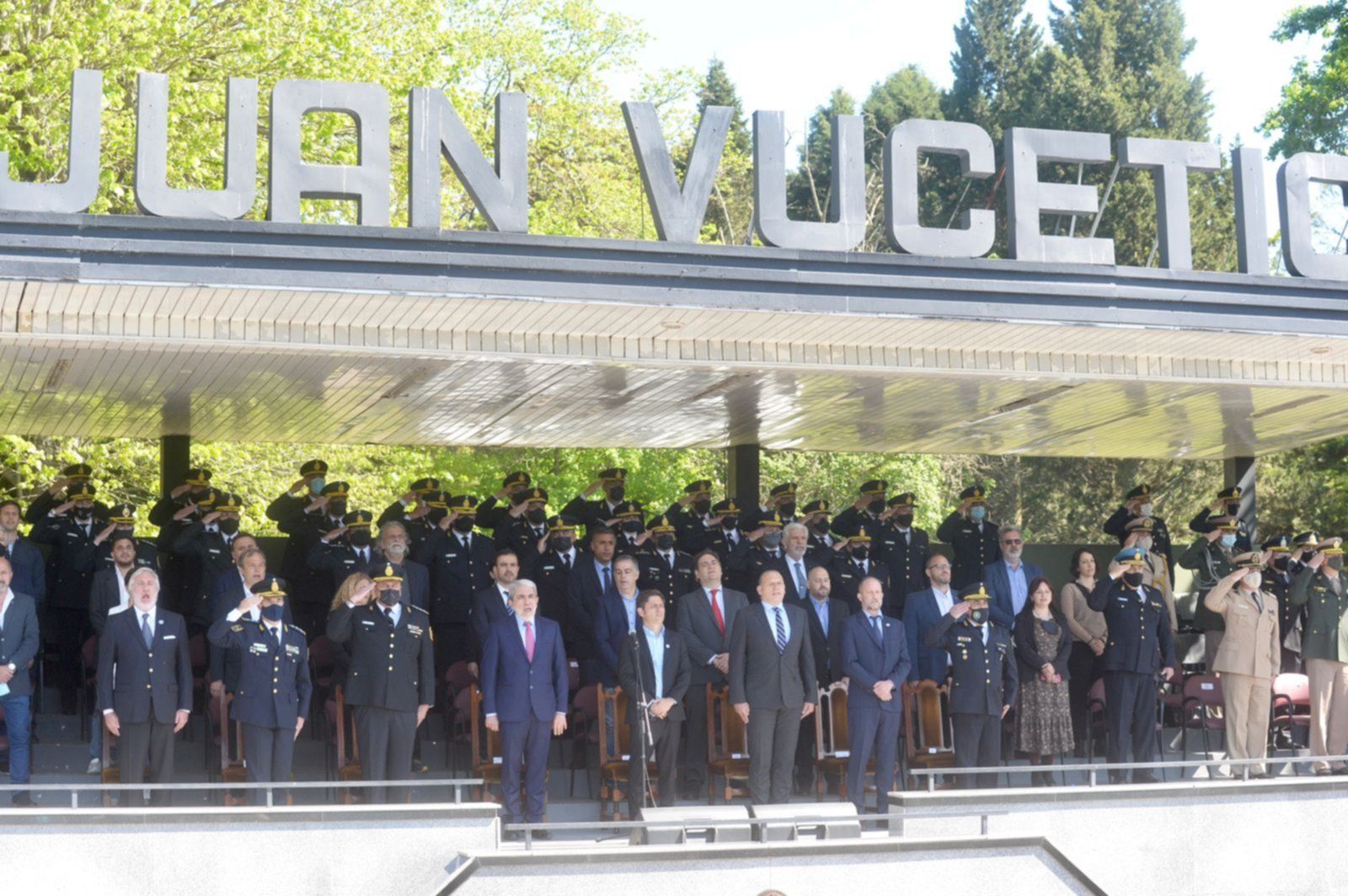 Kicillof agregó que, a tono con esto, se está "en proceso de lanzar la universidad policial provincial para la formación de los cadetes". El Gobernador hizo estas declaraciones durante un acto realizado con motivo de la jura de fidelidad a la Bandera Nacional de los cadetes de la Escuela de Policía "Juan Vucetich", acto en el que lo acompañaron el ministro de Seguridad de la Nación, Aníbal Fernández; el ministro de Seguridad bonaerense, Sergio Berni; y el jefe de Gabinete, Martín Insaurralde, entre otras autoridades.