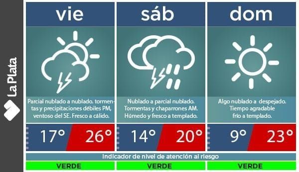 La semana cierra con un tiempo inestable. Aunque la mañana de este viernes comenzó con buen clima, sol y cielo despejado, los expertos anticipan la formación de tormentas y adelantaron que se esperan lluvias en La Plata y la región durante la tarde y la noche.