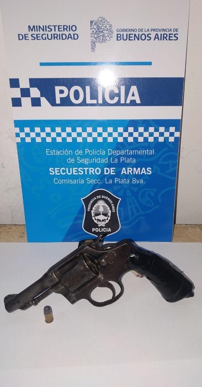 En la requisa correspondiente a uno de ellos se le encontró un revólver calibre 32 sin marca, cubierto con cinta negra y municiones del mismo calibre.
