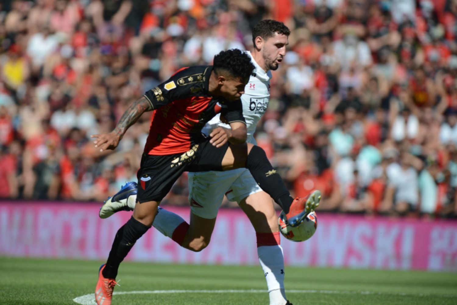 Ambos equipos salieron al campo con la intención de quedarse con los tres puntos, con distintos planteos tácticos, pero con las mismas ambiciones. Dentro de la paridad, Colón fue levemente superior y trató de imponer supremacía en el control del balón, con su tradicional juego de presión alta y buen manejo de la pelota y tuvo su premio a los 14 minutos, cuando Meza remató desde afuera del área por derecha y su disparo cruzado y bajó no pudo ser contenido por Mariano Andújar, quien erró en el cálculo y debió ir a buscarla al fondo del arco.