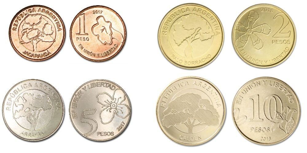 El Banco Central de la República Argentina (BCRA), mientras tanto, continúa con la emisión de las monedas de la línea "Árboles", de 1, 2, 5 y 10 pesos, que son de acero, más livianas y menos valiosas. La línea fue lanzada en 2018 y el cambio de material se previó para que el valor del metal fuera más bajo al valor económico.