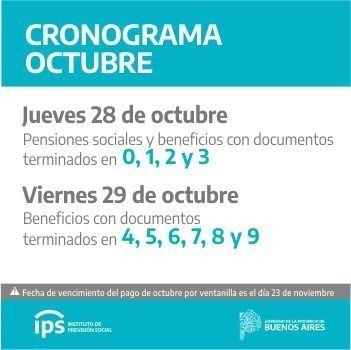 El Instituto de Previsión Social (IPS) de la provincia de Buenos Aires informó que ya fueron definidas las fechas de cobro de los jubilados y pensionados bonaerenses. Los beneficiarios percibirán sus haberes durante los dos próximos días, de acuerdo con la terminación de sus documentos de identidad.