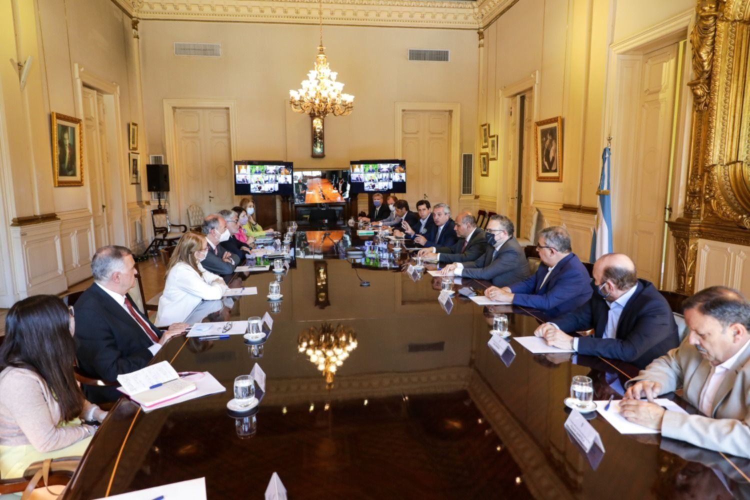 El encuentro fue encabezado por el presidente Alberto Fernández, quien junto a parte de su gabinete dio precisiones a los mandatarios sobre las razones y los alcances de la medida que fija los precios por 90 días de una canasta de 1.432 productos hasta el 7 de enero próximo.