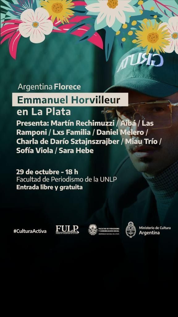 El festival del ciclo "Argentina Florece", que despliega escenarios al aire libre de forma federal con espectáculos artísticos en ámbitos cuidados para acompañar el reencuentro social en todo el país, llega a La Plata con una jornada musical, filosófica y de humor que se llevará adelante este viernes desde las 18 en la facultad de Periodismo de la UNLP.