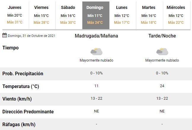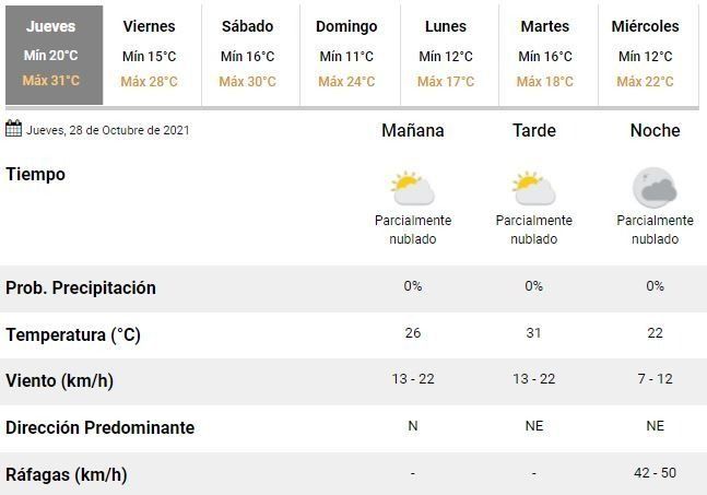 La semana cerrará con otra jornada de calor y una temperatura oscilando entre los 15 y 28°C, acompañada de un cielo algo nublado y fuertes vientos soplando desde el Noreste.