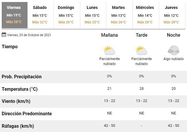 El viernes comenzó con 19°C y los expertos anticipan que la máxima trepará hasta unos 28°C, en medio de una jornada a puro sol, con mucha humedad y fuertes vientos, que podrían incluir ráfagas de hasta 50 kilómetros por hora.