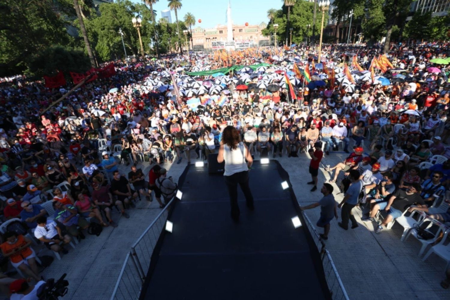 Pitrola, en tanto, dijo que "esta es la Plaza antagónica a las del 17 y 18 de octubre, realizadas para apoyar al peronismo del FMI. Desde acá planteamos la tarea estratégica de la recuperación de los sindicatos de mano de la burocracia sindica. En la línea de la formidable victoria del clasismo en el SUTNA. Solo el FIT-U y los trabajadores podemos hacerle frente a la reforma laboral y al FMI".