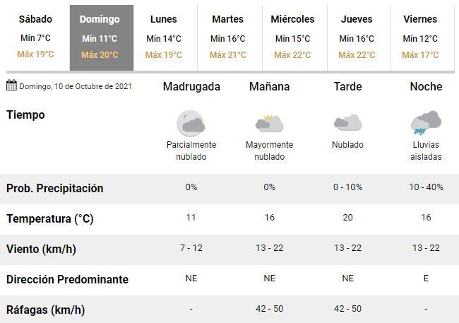 El mal tiempo llegaría hacia el cierre del domingo, con algunas lluvias aisladas durante las últimas horas de la tarde y la noche.