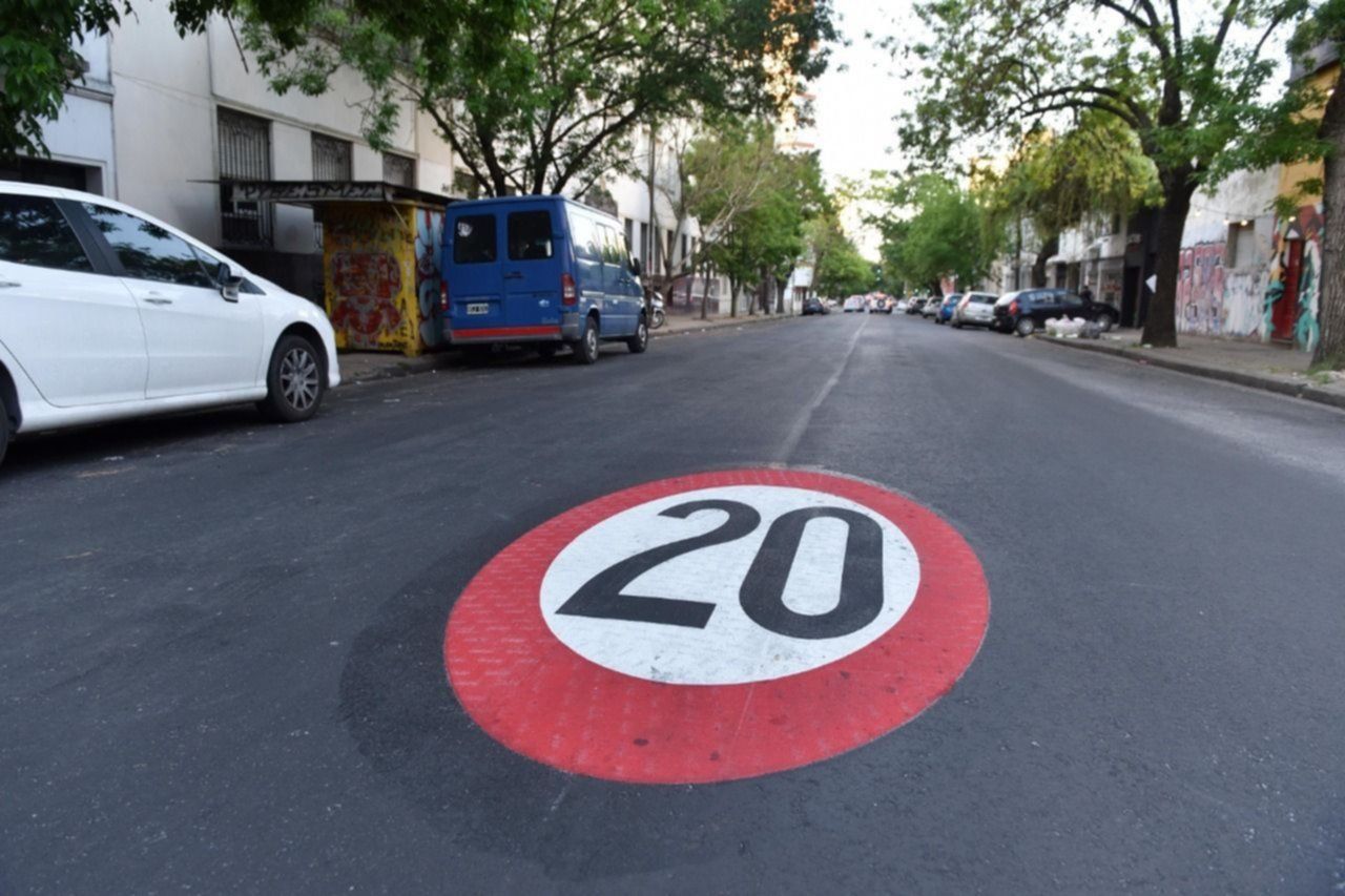 Como parte de los trabajos, también se colocaron señales preformadas que indican la velocidad máxima de 20km/h y la proximidad de zona de escuelas.