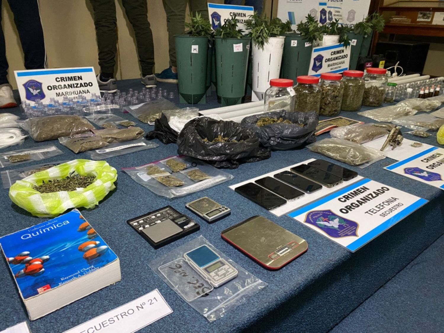 Los investigadores lograron determinar que los detenidos no solo vendían cocaína sino también pastillas de éxtasis con varias identificaciones diferentes. Durante los operativos los agentes secuestraron 108 gramos de la cocaína rosa, 35.360 microdosis de LSD, 173 pastillas de éxtasis, ketamina, casi dos kilos de cogollos de marihuana, 18 plantas de la misma droga y otros elementos de interés de interés para la causa como un libro de química, teléfonos celulares, balanzas, bidones con fertilizante, filtros de carbón, extractores de aire, lámparas LED, macetas de plástico, un recibo de dinero por un monto total de $303.623.41 pesos con origen de Colombia y hasta un revólver.