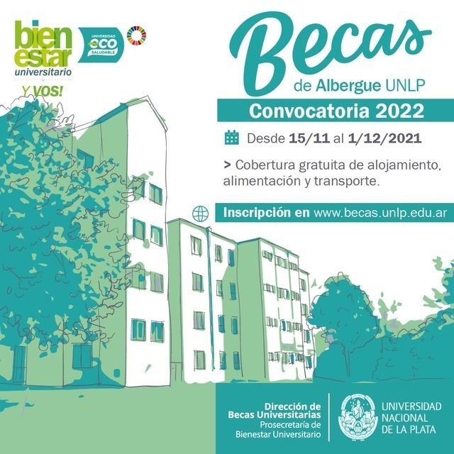 Becas para estudiantes inquilinas/os: beneficio económico destinado a quienes no sean oriundos de La Plata o la región, y deban alquilar un inmueble o pensión, para el desarrollo de sus estudios de grado.