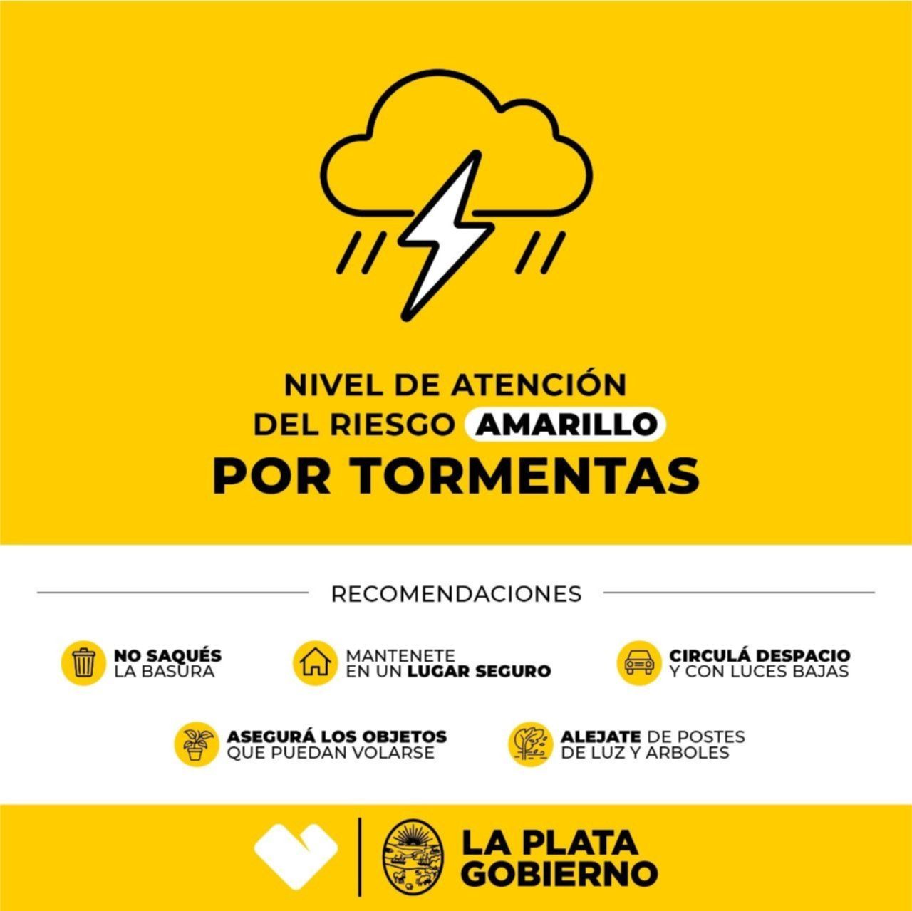 Las autoridades locales, por su parte, también elevaron el Nivel de Atención del Riesgo (NAR) a "Amarillo" ante la posibilidad de fuertes tormentas y veloces vientos en la ciudad.