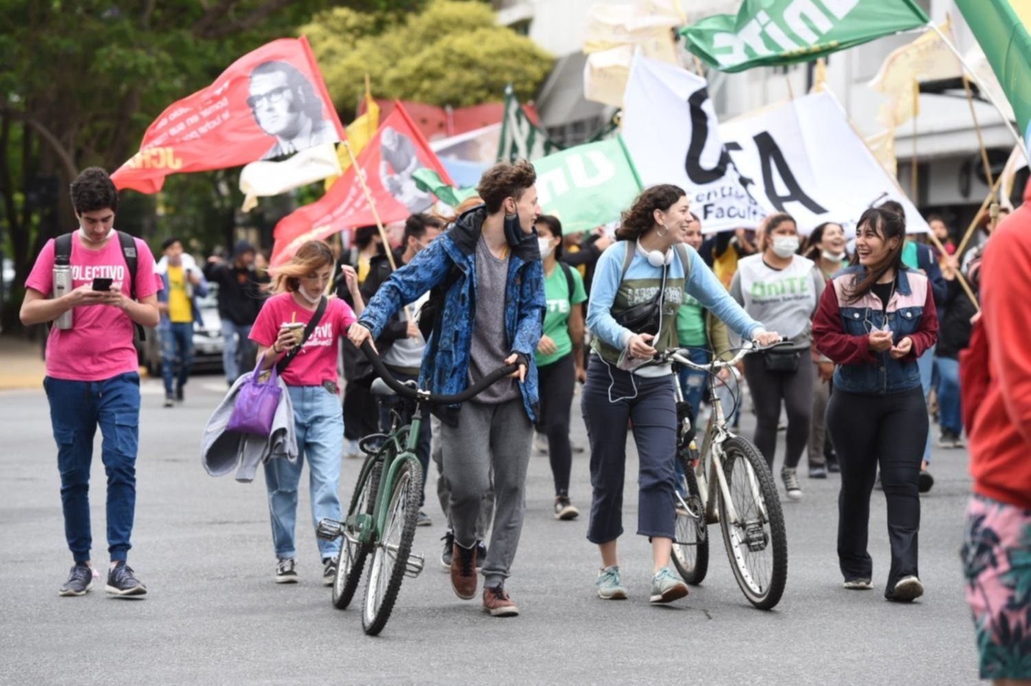 Con banderas y bombos, los estudiantes se congregaron en las puertas del Comedor Universitario de la UNLP, en 50 y 116, y luego se trasladaron hasta el centro de la ciudad para visibilizar su reclamo.
