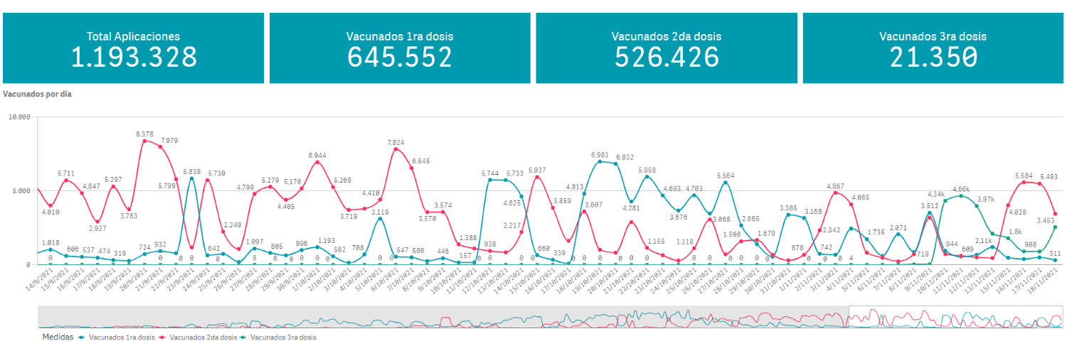 Según los registros, los días de más cantidad de terceras dosis aplicadas fueron los tres primeros, cuando se aplicaron unas 13 mil de las 21 mil vacunas suministradas hasta ahora.