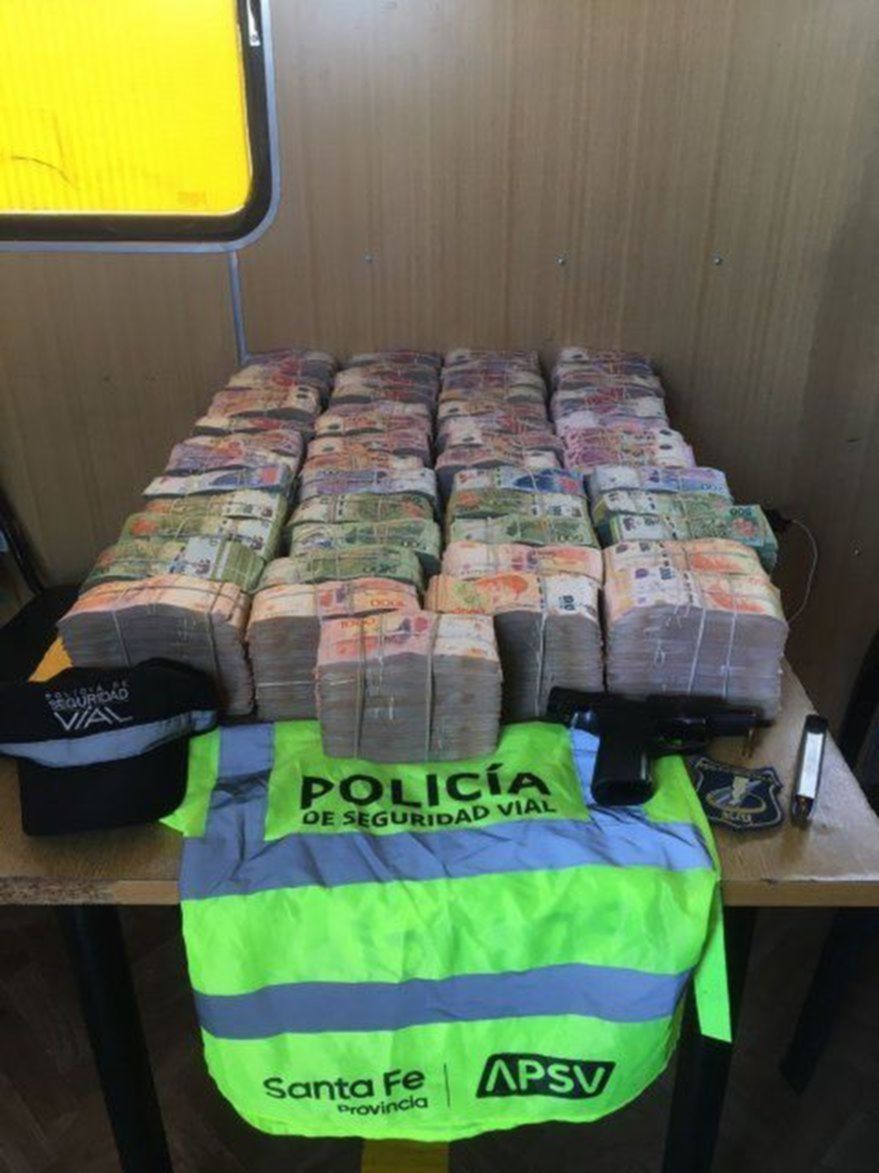 Los efectivos revisaron la camioneta y encontraron cajas con fajos de billetes por un total de 16 millones de pesos en efectivo. El hombre no pudo justificar la procedencia del arma y de la suma de dinero, por lo que quedó detenido.