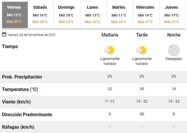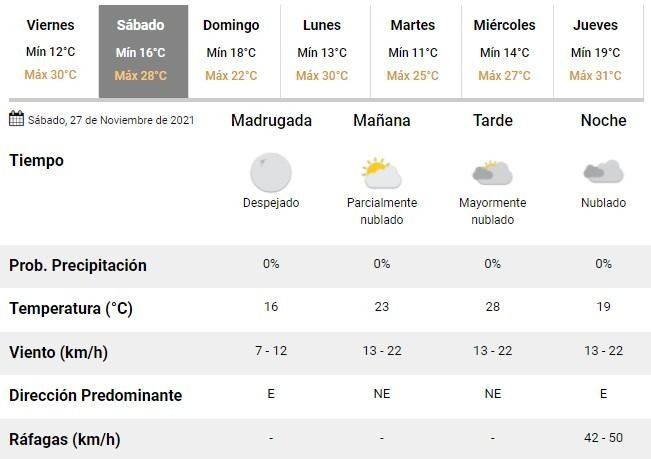 Así las cosas, la semana próxima comenzaría con mínimas de 13 y 11°C los próximos lunes y martes, respectivamente; aunque con cielos ligeramente nublados y máximas de entre 25 y 30°C.
