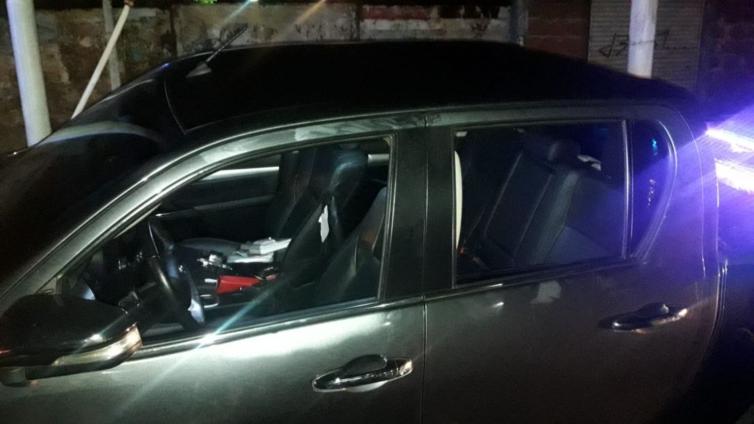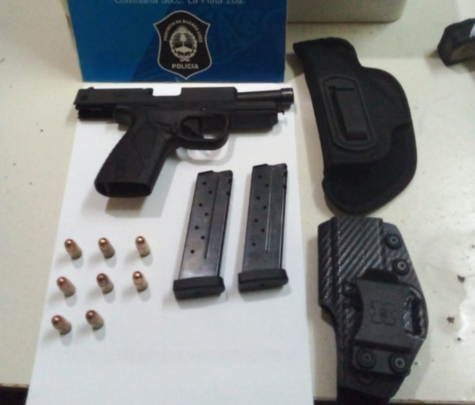 Al arribar a 122 esquina 50 los efectivos policiales identificaron al individuo. Si bien entre sus prendas no encontraron nada, al requisar su camioneta marca Toyota Hilux hallaron un arma de fuego marca Bersa calibre 9 mm con dos cargadores con municiones.