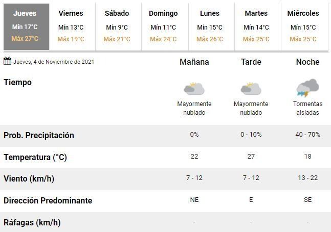 Las chances de nuevas lluvias y tormentas van en aumento y los expertos indican que durante la noche de este jueves podrían volver a la ciudad. Los meteorólogos anunciaron además un día gris y húmedo, con una temperatura oscilando entre los 17 y 27°C.