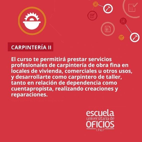 En el se difundió a través de las redes sociales y en él se indicó además que los interesados en realizar algunos de estos cursos deberán completar un formulario online que estará disponible en el sitio unlp.edu.ar/oficios.