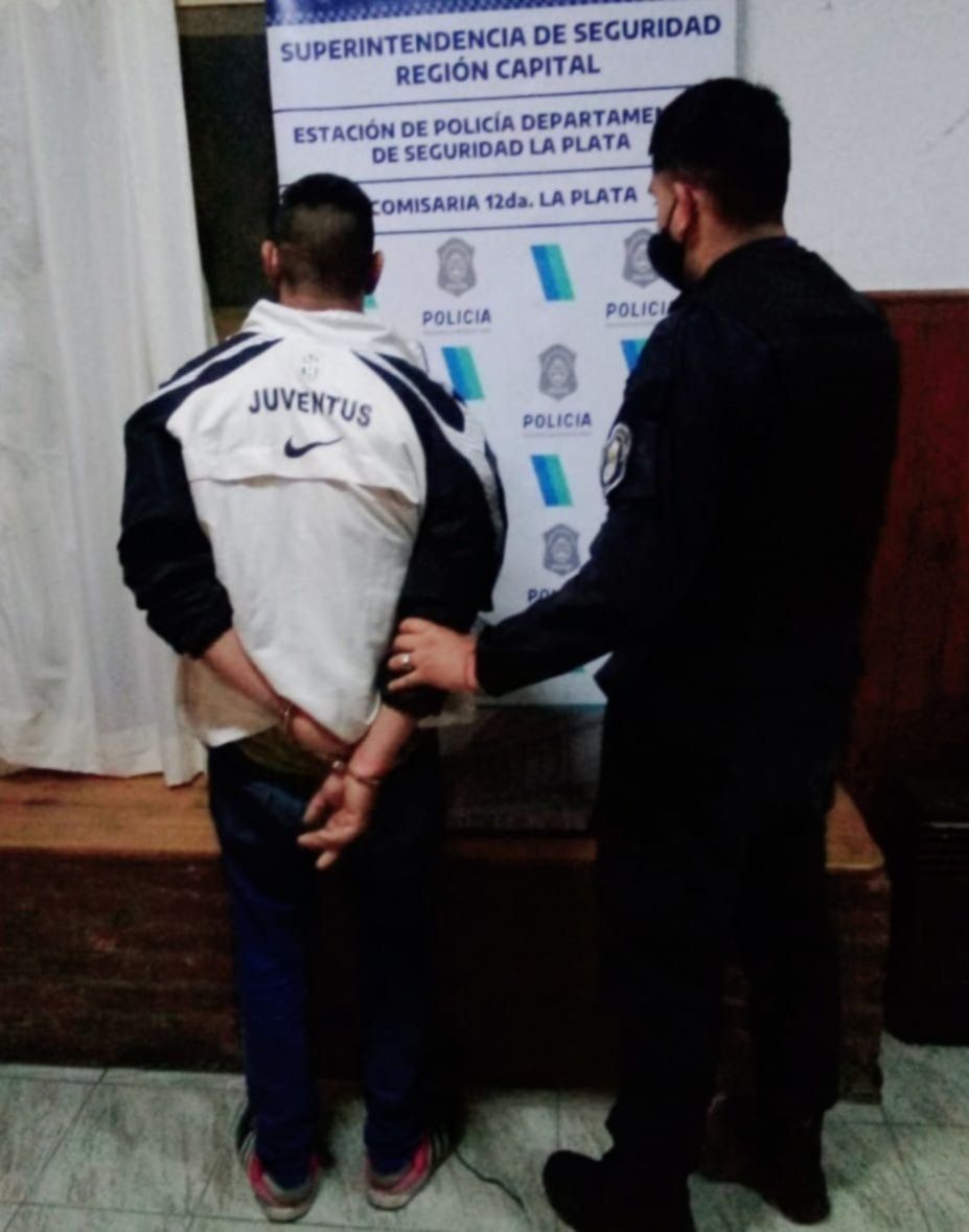 Al llegar un patrullero del Comando Norte, el agresor los recibió a piedrazos, provocando la ruptura del parabrisas de la camioneta policial. Luego intentó resistirse golpeando a los agentes que, sin embargo, pudieron reducirlo y lo detuvieron para trasladarlo a la comisaría Decimosegunda, donde fue puesto a disposición de la UFI N °15 del Departamento Judicial de La Plata.