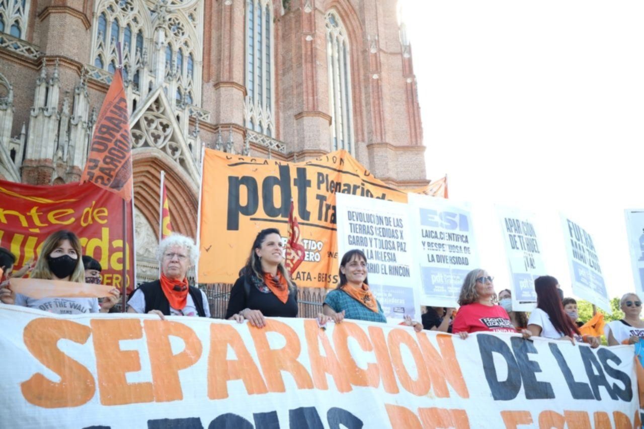 —Reclamamos la separación de la Iglesia y el Estado, y también buscamos poner en evidencia que muchas de las políticas que hemos conquistado con la lucha del movimiento de mujeres y diversidades no se aplican o tienen aplicación sumamente limitada como la Interrupción Voluntaria del Embarazo. Esta ley, que se aprobó en diciembre de 2020, no tiene aplicación en los distritos ni en los hospitales. Faltan insumos y hay distritos donde las propias profesionales de la salud denuncian que fueron desmantelando los equipos en vez de reforzarlos. En segundo lugar, pedimos que se dé la información adecuada sobre la Interrupción Legal del Embarazo. Y, en tercer lugar, que no haya restricciones para la aplicación de la ley de Educación Sexual Integral (ESI). No va más que haya una semana de la ESI porque es un contenido transversal, permanente y por eso insistimos en que tiene que haber materias especiales. Esto va muy ligado a la separación de la Iglesia y el Estado porque, mientras no hay recursos para la ESI y se ponen obstáculos, llueven los recursos y subsidios a todas las iglesias y no sólo la Católica. Un reclamo particular de este pañuelazo tuvo que ver con la devolución de las tierras del barrio El Rincón que fueron otorgadas al Arzobispado de La Plata cuando la población de ese barrio reclamaba esas tierras para abrir un jardín de infantes. Y ahora quedó en manos de la Iglesia y seguramente será usado para reproducir prácticas de sometimiento.