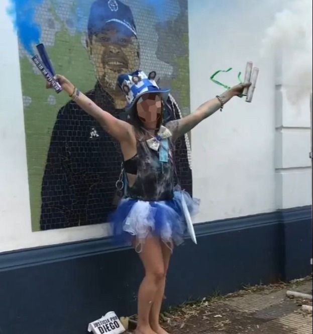 El posteo recibió cientos de comentarios para repudiar el accionar de la joven, al tiempo que otros difundieron su imagen posando con dos bengalas de humo azul junto al mural del ex entrenador de Gimnasia. Junto a ella, en tanto, se pudieron observar los impactos de los "huevazos" que dieron de lleno contra el mural inaugurado tras la muerte del Diez y como un homenaje tras su paso por la dirección técnica del Lobo.