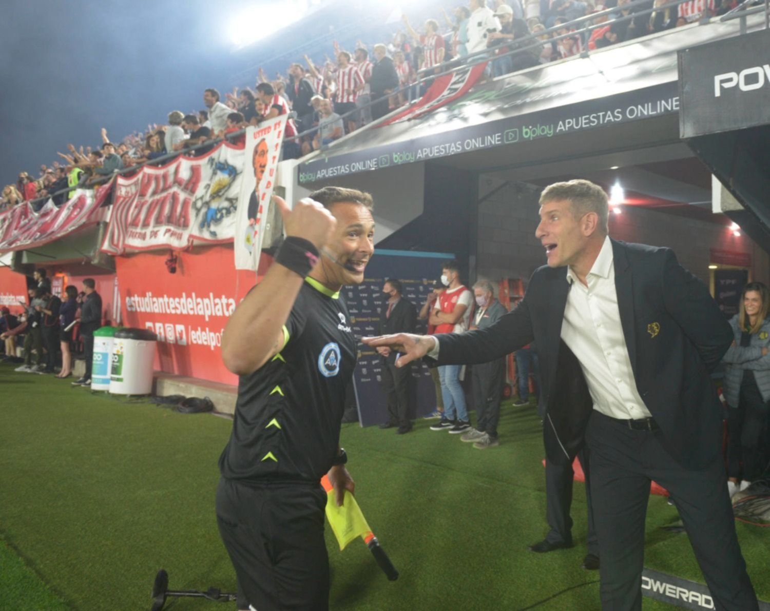 Palermo compró en su momento un palco en el nuevo estadio y será la cuarta vez que dirija ante Estudiantes, con dos triunfos, un empate y una derrota. La primera vez fue en el Estadio Ciudad de La Plata en el Torneo Final 2013 y fue empate en cero entre el "Pincha" y Godoy Cruz. Luego fue un triunfo en Mendoza y dos veces en Sarandí con una victoria y una derrota. Durante la ceremonia el vicepresidente de la institución Juan Sebastián Verón, le entregó una camiseta con su nombre.