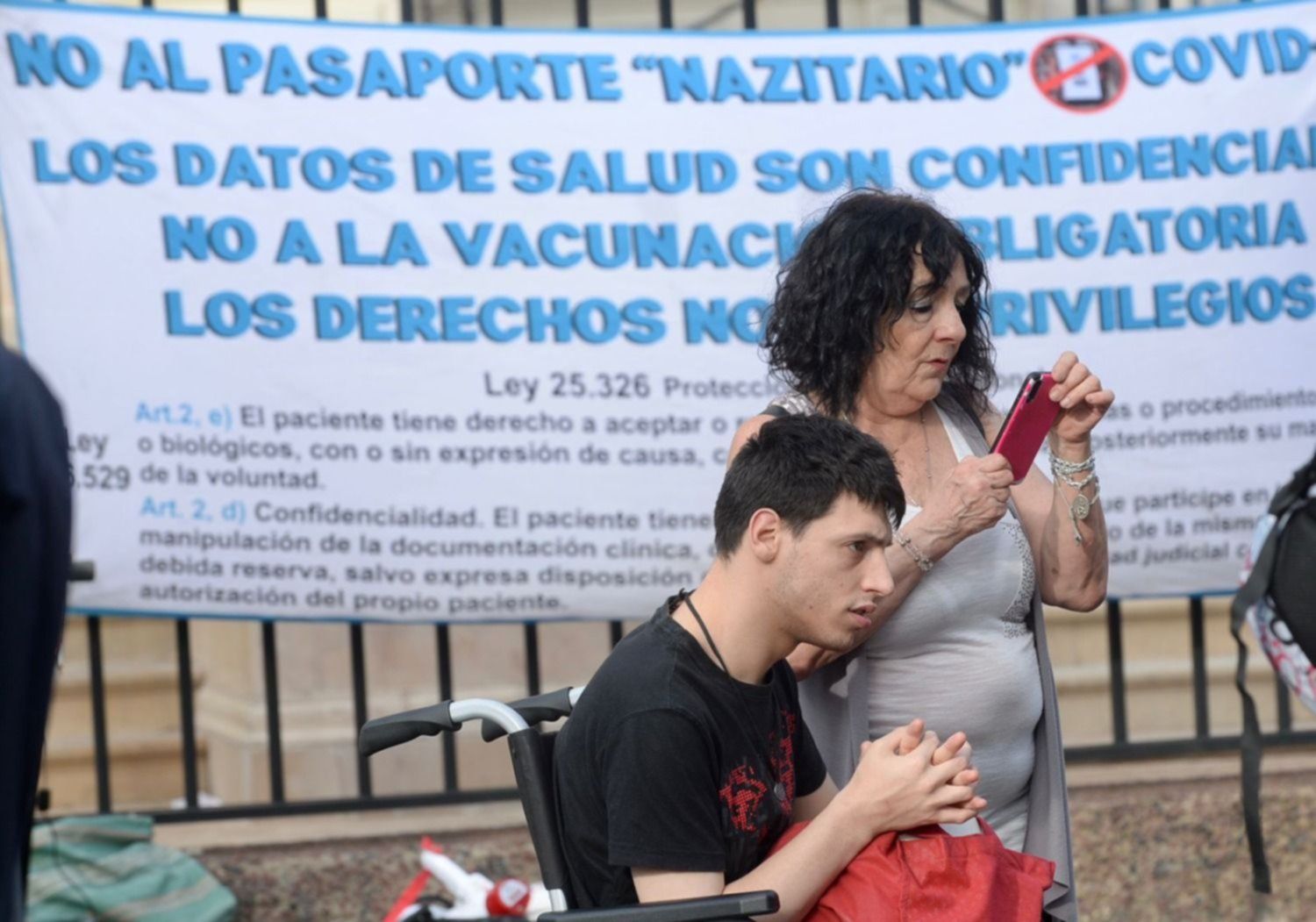 El grupo, que se define como “antivacuna”, protestó abiertamente contra la inmunización y sostuvo que no debe ser obligatoria porque “los datos de salud son confidenciales”.
