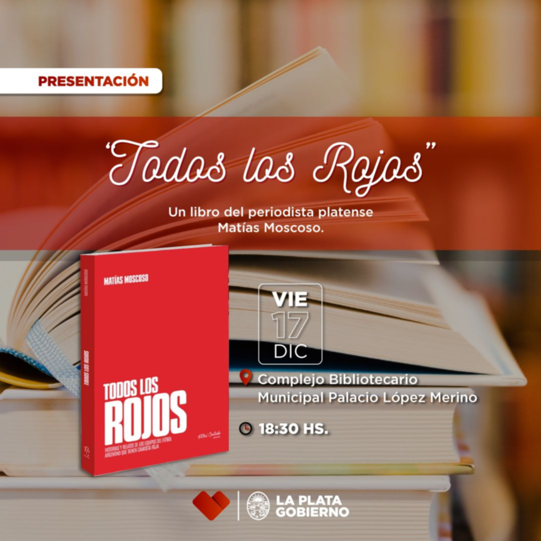 Este viernes 17 de diciembre, el periodista platense Matías Moscoso presentará su primer libro titulado Todos los Rojos (Fútbol Contado Ediciones), una investigación en la que narra las historias de más de doscientos equipos del fútbol argentino que tienen camiseta roja.
