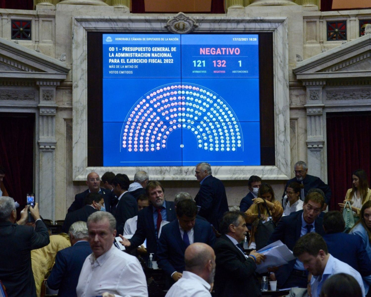 La moción había sido planteada por el diputado de Juntos Somos Río Negro, Luis Di Giácomo. La propuesta tuvo 122 afirmativos contra 128, correspondientes al interbloque de Juntos por el Cambio, que anticipó su rechazo a ese planteo, tras un fuerte cruce en el recinto con el Frente de Todos.