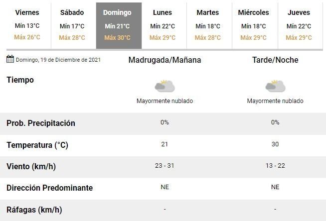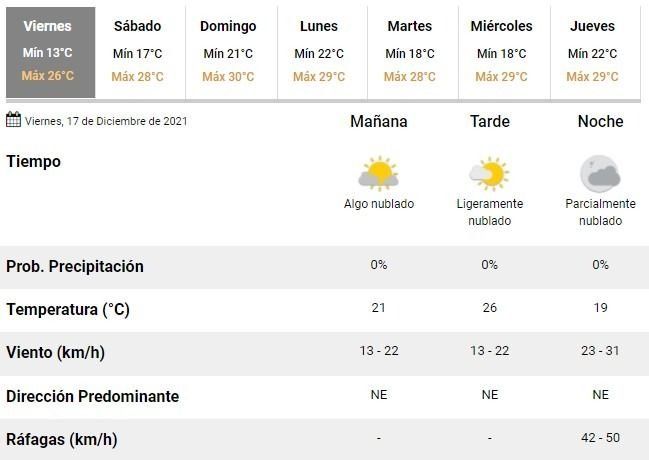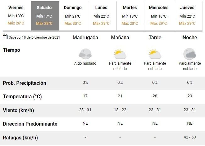 De esta manera, durante las dos jornadas de descanso se prevé un aumento de las máximas, que alcanzarán entre 28 y 30°C el sábado y el domingo, respectivamente. Además se prevén cielos algo nublados pero sin la amenaza de lluvias, al menos hasta el momento.